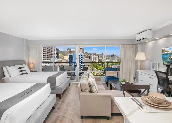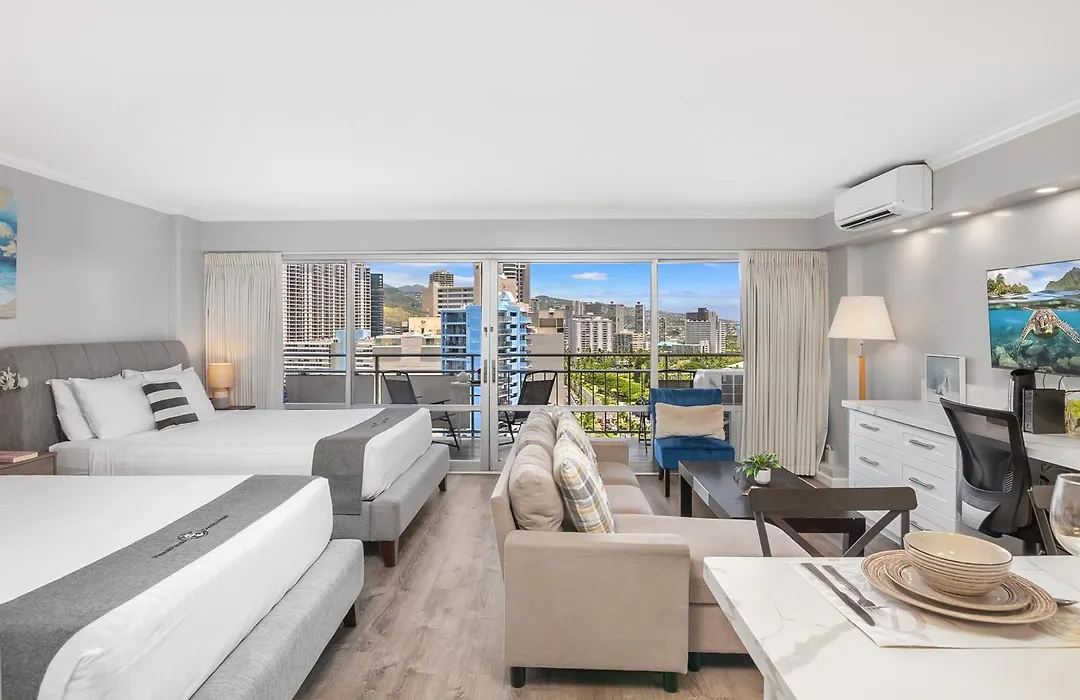 Offering a heated pool, the 46 m² City View Studio Condo at Ilikai, Close to Beach is situated around a 25-minute walk from North Shore. The apartment offers private car parking on site.